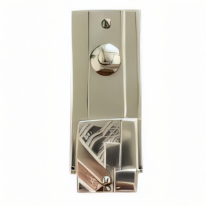 L’art déco est un courant artistique qui voit le jour dans les années 1910 et qui connait son plein épanouissement au cours des années 20 pour à la fin décliner dans les années 30. Le terme « Art déco » est l’abréviation de « Arts décoratifs », il touche le monde de l’architecture, plus précisément l’aménagement et la décoration de l’intérieur.Dimension: 12x4,5 cmMatière: chromé