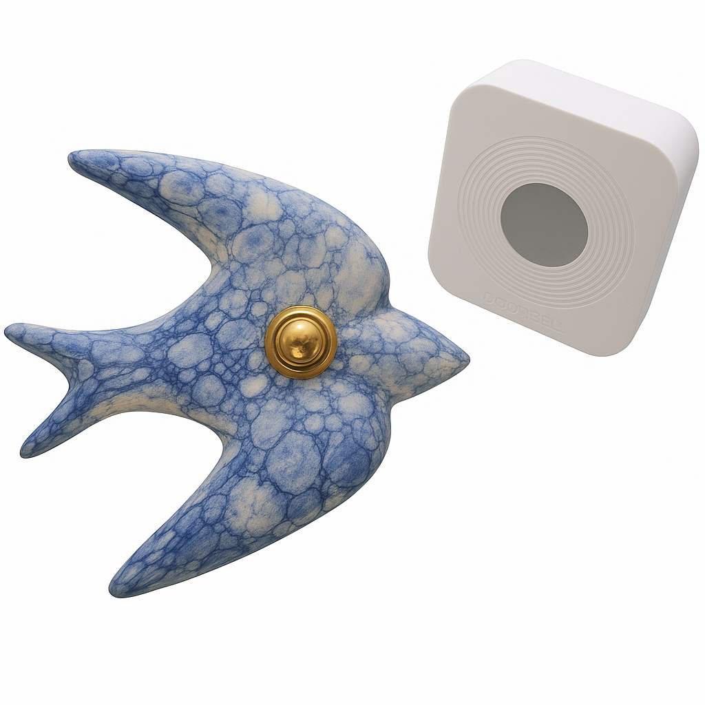 Découvrez l'Oiseau Bleu, la dernière nouveauté de la collection La Fée Sonnette, qui allie poésie et innovation technologique. Cette sonnette n'est pas seulement un objet décoratif, c'est une véritable révolution pour votre entrée : elle est sans fil .